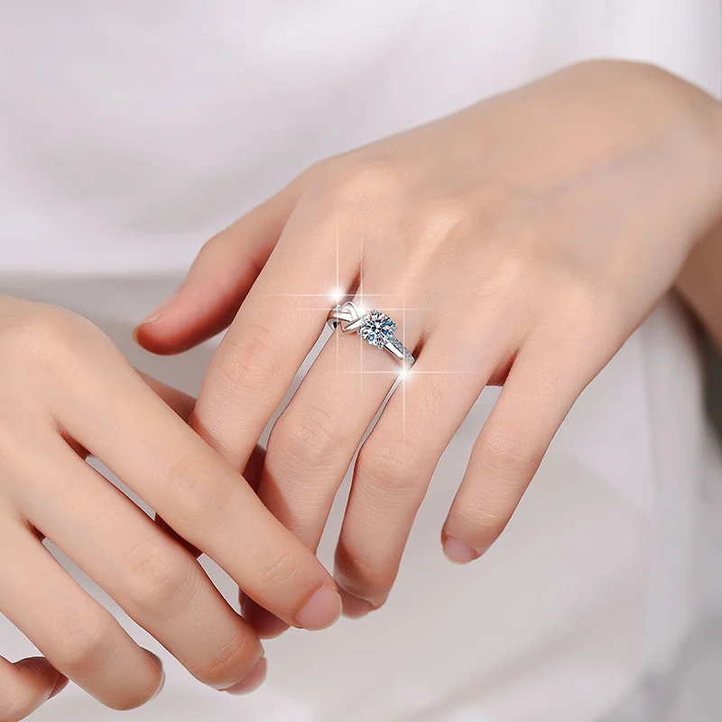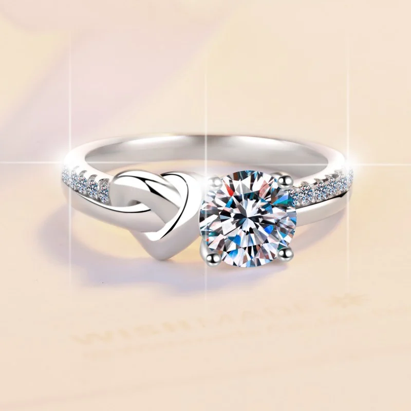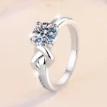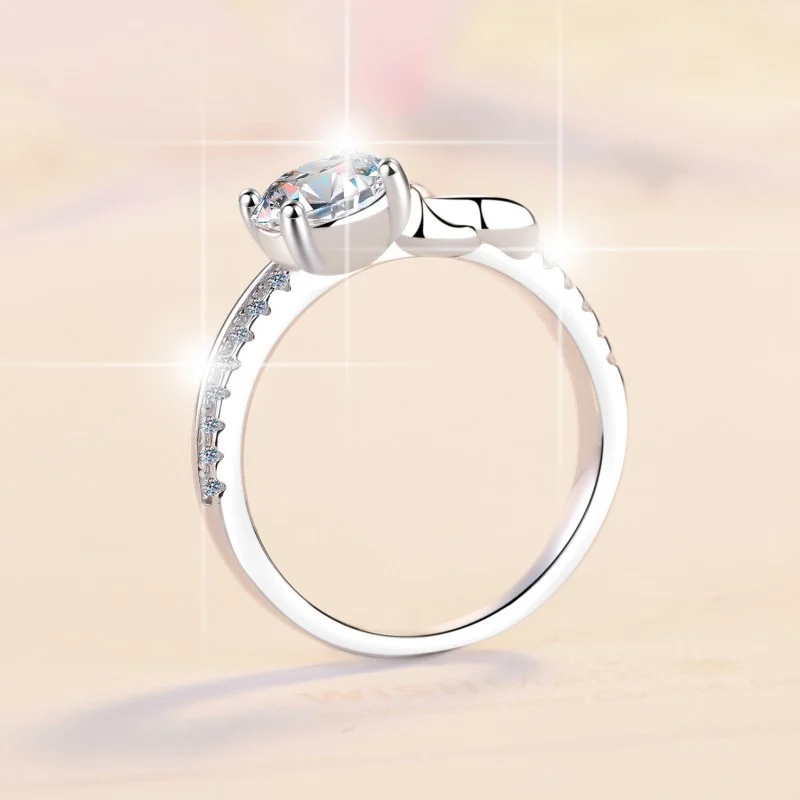 Elegant 1-Carat Bowknot Ring in White Gold-Plated S925 Sterling Silver – Classic Four-Prong Setting with a Refined, High-End Design for Women
