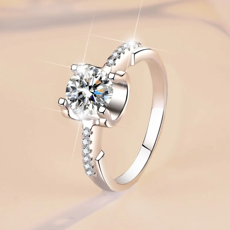 Elegant 0.2-Carat Diamond Ring in White Gold-Plated Finish – A Simple, Timeless Design for Women