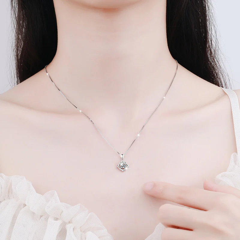 Elegant 1-Carat D-Color Moissanite Windmill Pendant Necklace in 925 Sterling Silver for Women