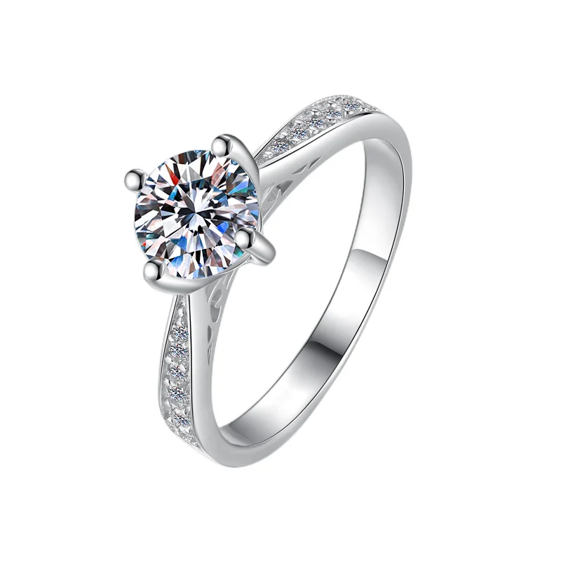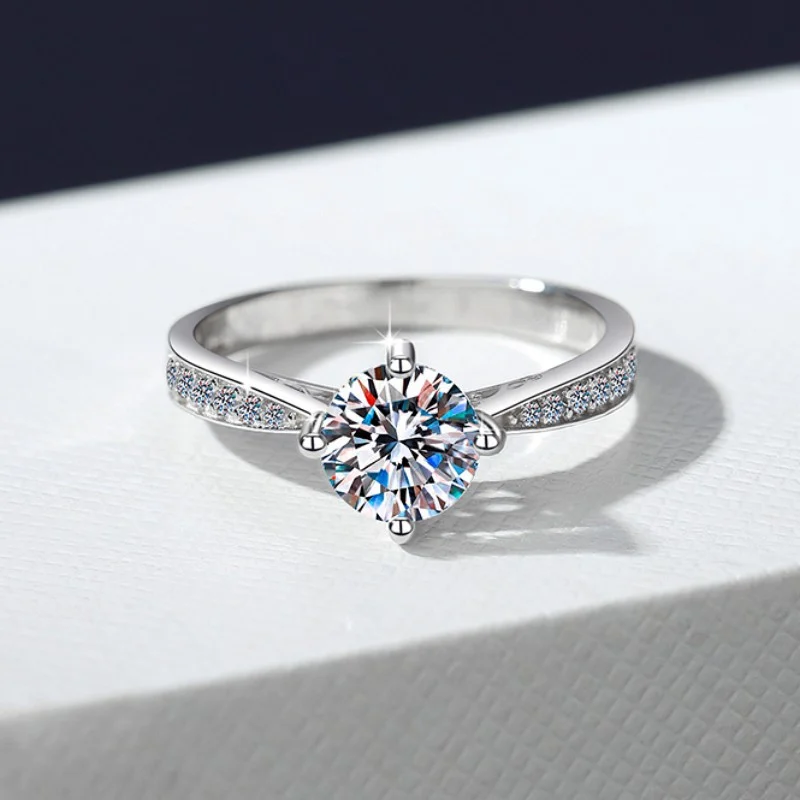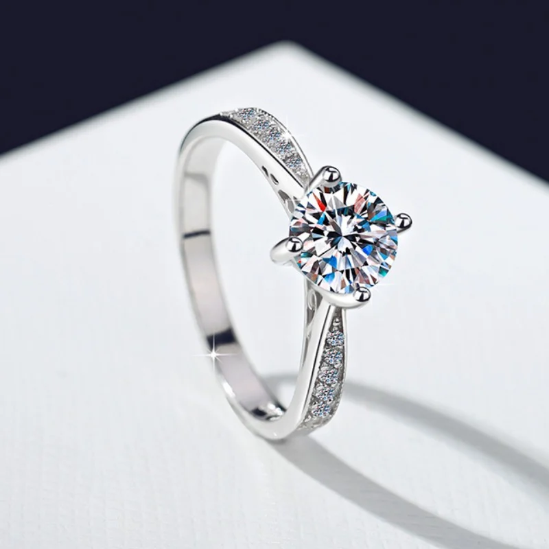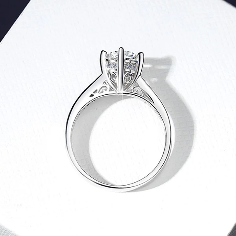 Elegant 1-Carat Four-Prong Ring in White Gold-Plated S925 Sterling Silver for Women – A Refined, Timeless Design