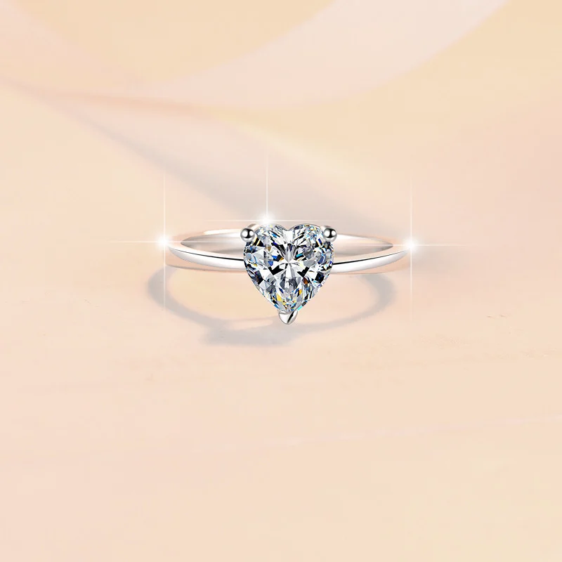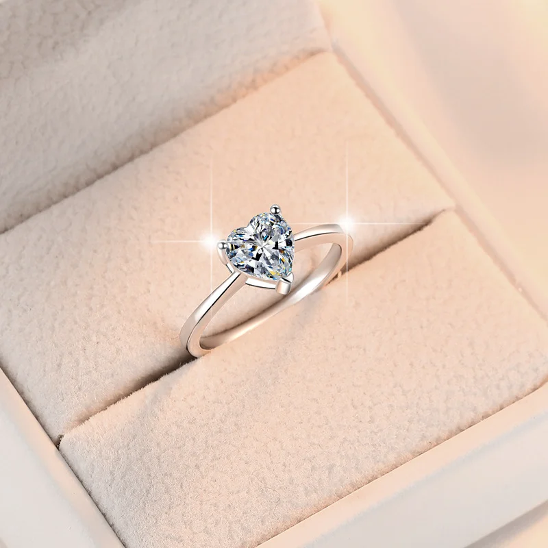 Elegant 1-Carat Heart-Shaped Ring in White Gold-Plated S925 Sterling Silver – A Sweet, Minimalist Design