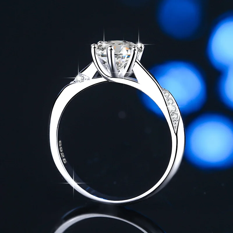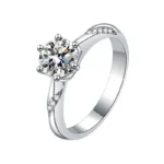 Elegant 1-Carat Moissanite Ring – Classic Crown Setting in Platinum-Plated S925 Sterling Silver for Women