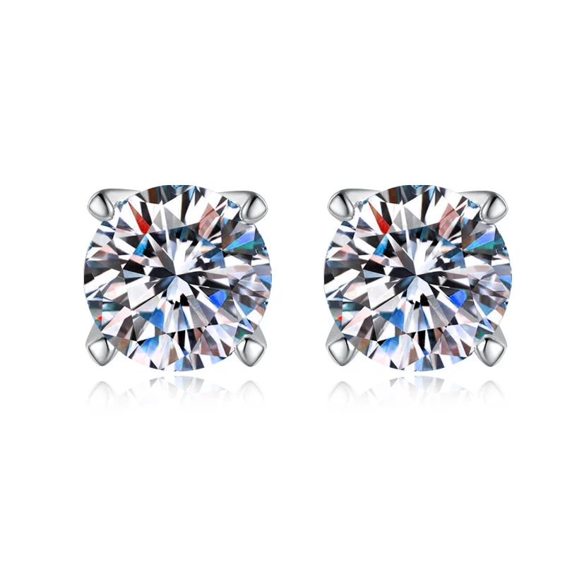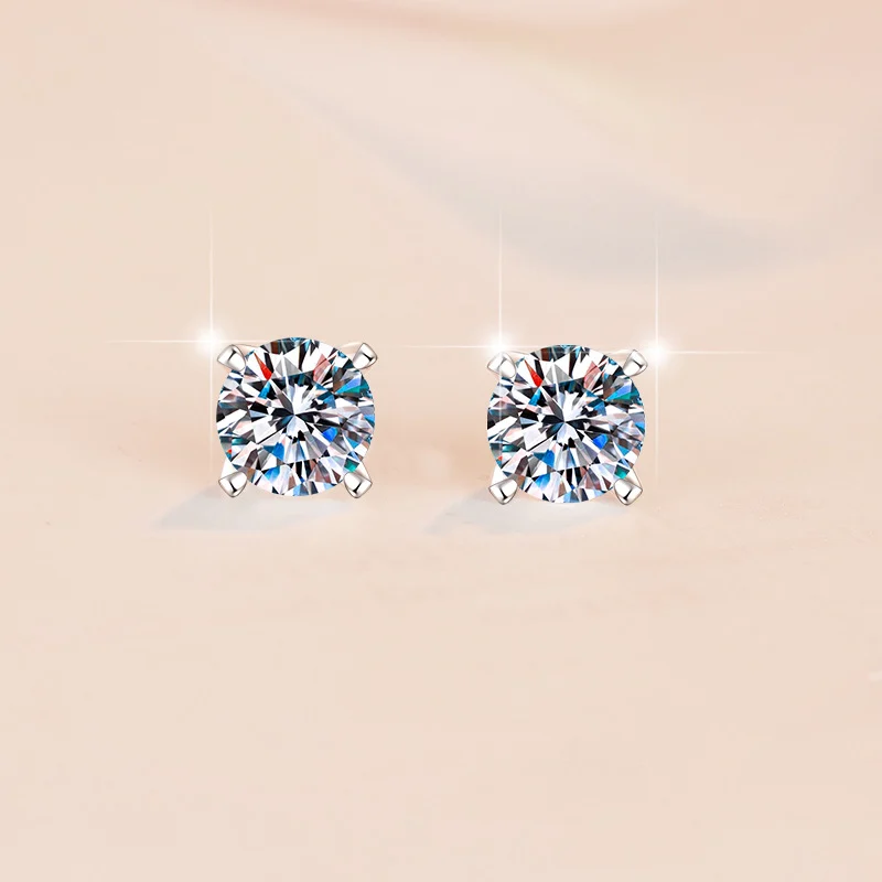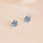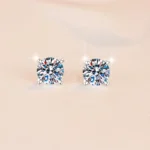 Elegant 1-Carat Moissanite Stud Earrings – Four-Prong Setting in S925 Sterling Silver