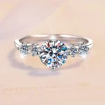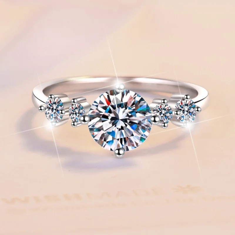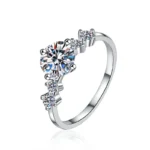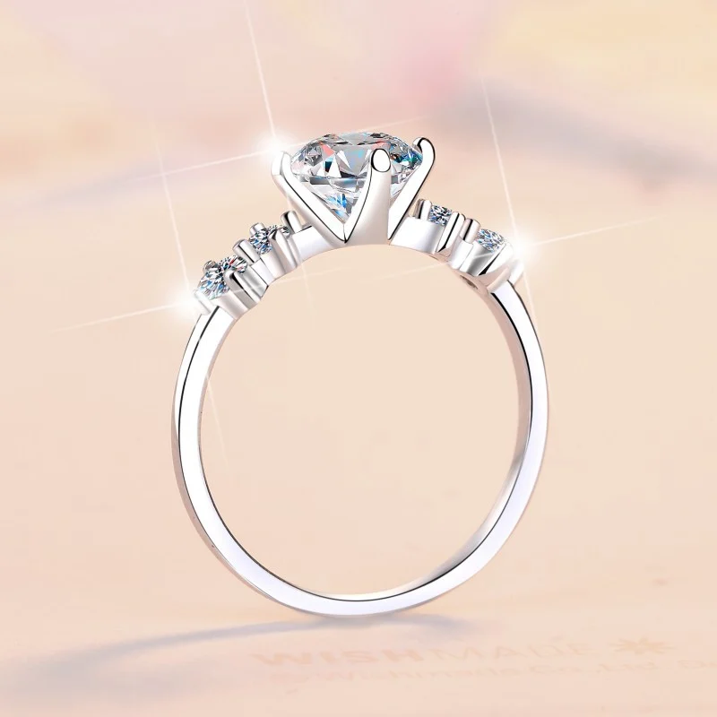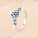Elegant 1-Carat Multi-Stone Ring in White Gold-Plated S925 Sterling Silver – Classic Four-Prong Setting for Women