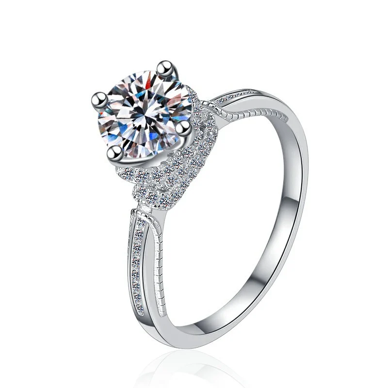 Elegant 1-Carat Bowknot Ring in White Gold-Plated S925 Sterling Silver – Classic Four-Prong Setting with a Refined, High-End Design for Women