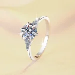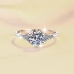 Elegant 1-Carat Bowknot Ring in White Gold-Plated S925 Sterling Silver – Classic Four-Prong Setting with a Refined, High-End Design for Women