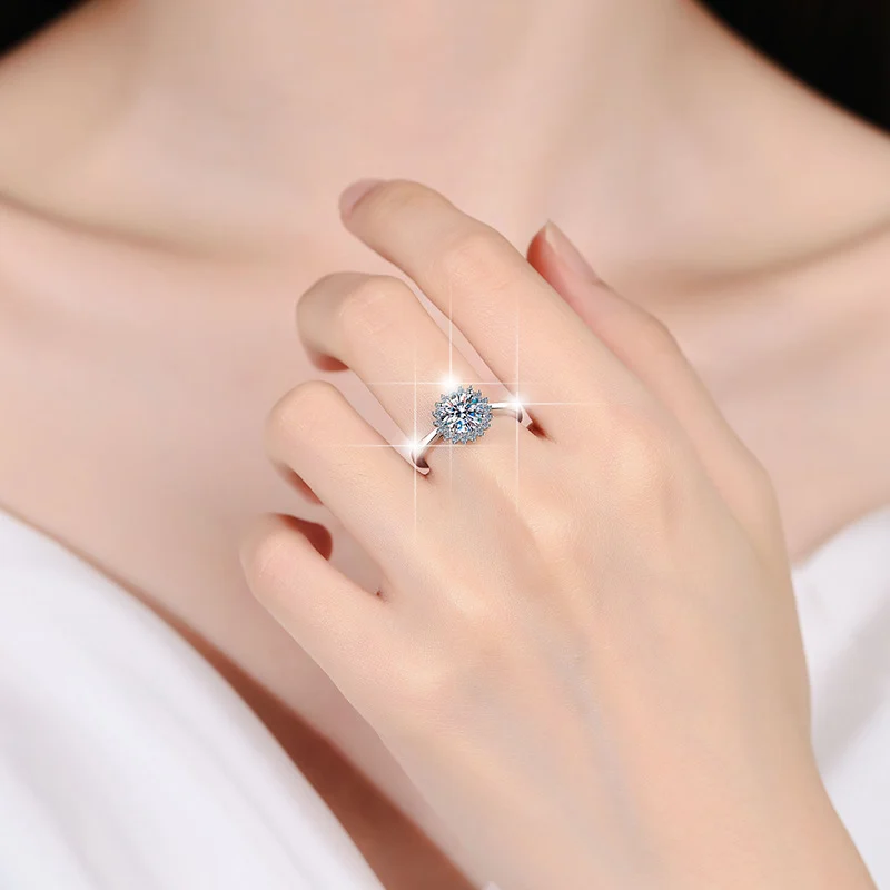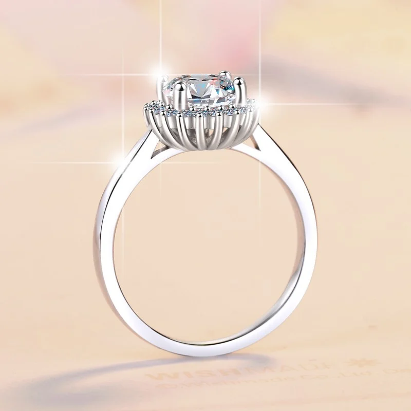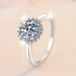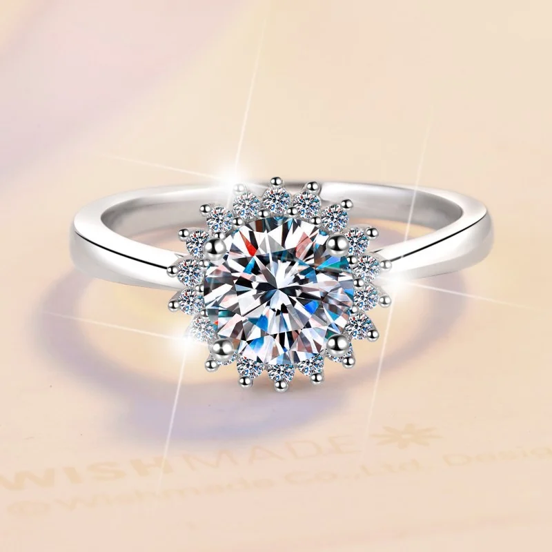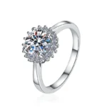Elegant 1-Carat Sunflower Ring in White Gold-Plated S925 Sterling Silver – A Radiant, Refined Design for Women