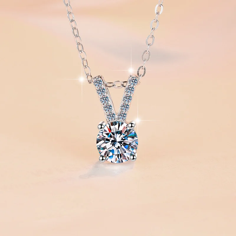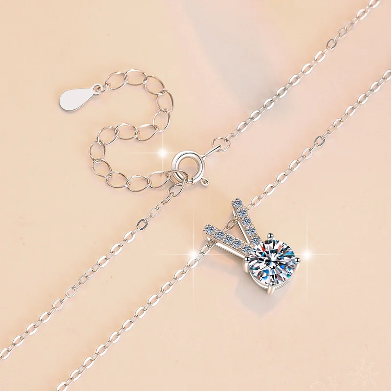 Elegant 1-Carat V-Shaped Pendant Necklace in White Gold-Plated for Women