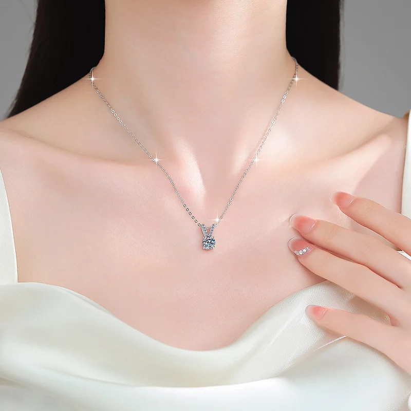 Elegant 1-Carat D-Color Moissanite Angel Eye Pendant Necklace in S925 Sterling Silver for Women