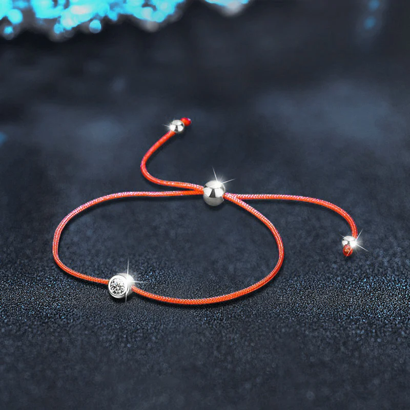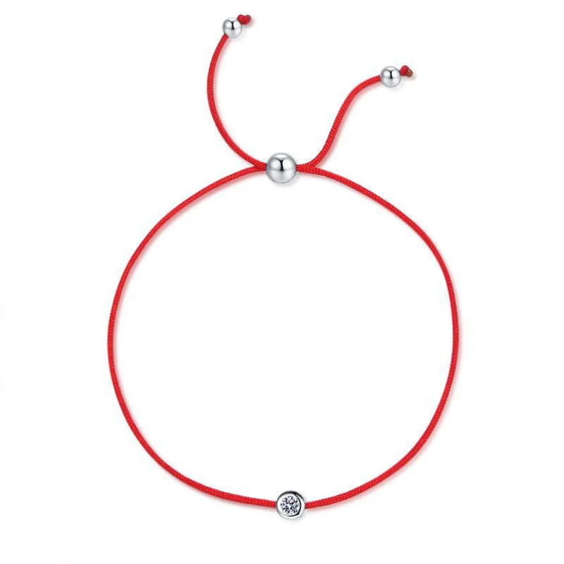 Elegant Adjustable Red String Bracelet in White Gold-Plated 925 Sterling Silver
