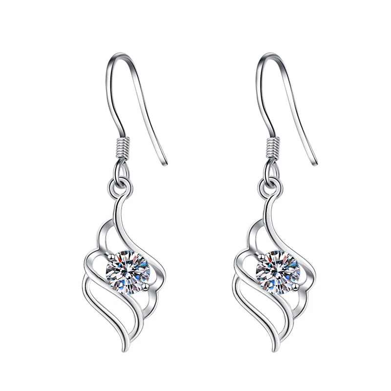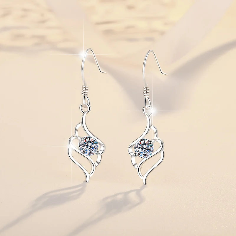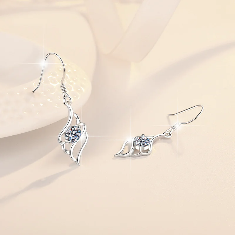 Elegant Angel Wings Moissanite Earrings in White Gold-Plated S925 Sterling Silver for Women