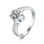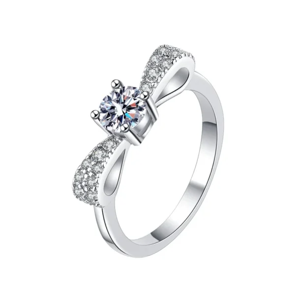 Elegant 1-Carat Bowknot Ring in White Gold-Plated S925 Sterling Silver – Classic Four-Prong Setting with a Refined, High-End Design for Women