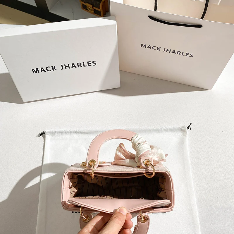 Crossbody Shoulder Handbag for Women – Small Square Woven Strap Scarf Accent Princess Diana Style Bag