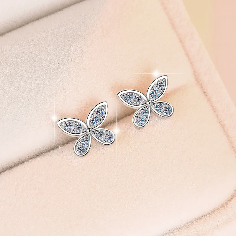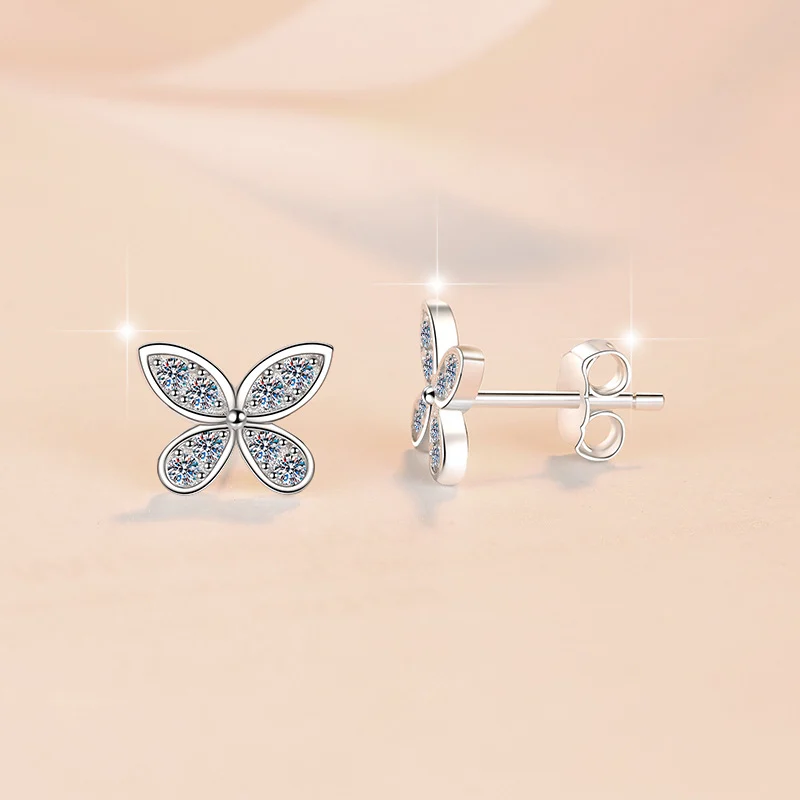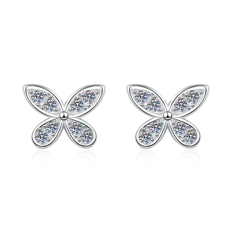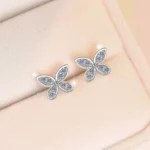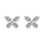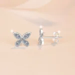 Elegant Butterfly Earrings in White Gold-Plated 925 Sterling Silver – Korean-Inspired Fashion for Women