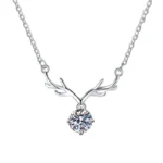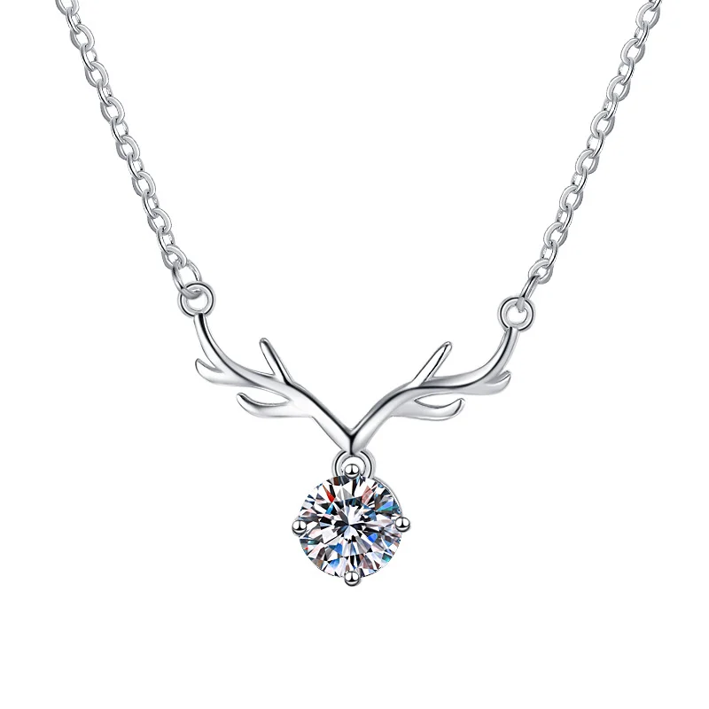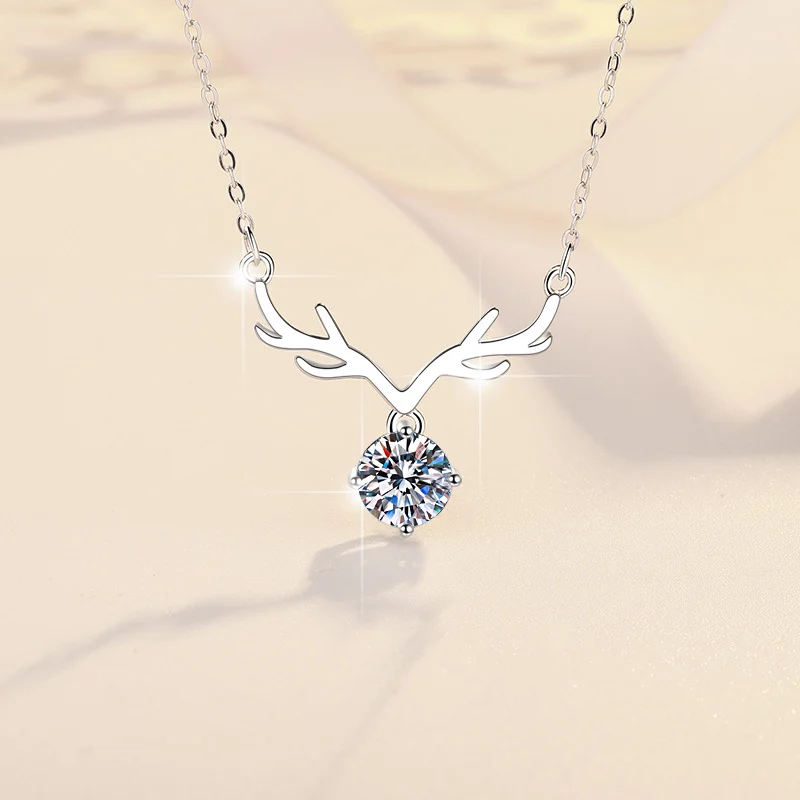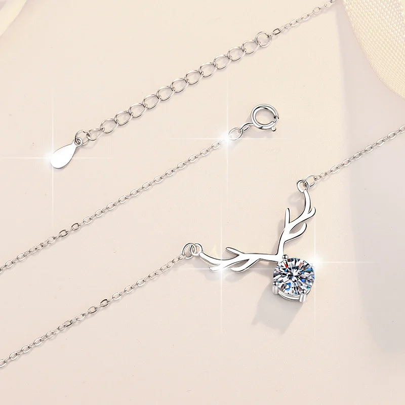 Elegant Deer Antler Pendant Necklace with a White Gold Finish