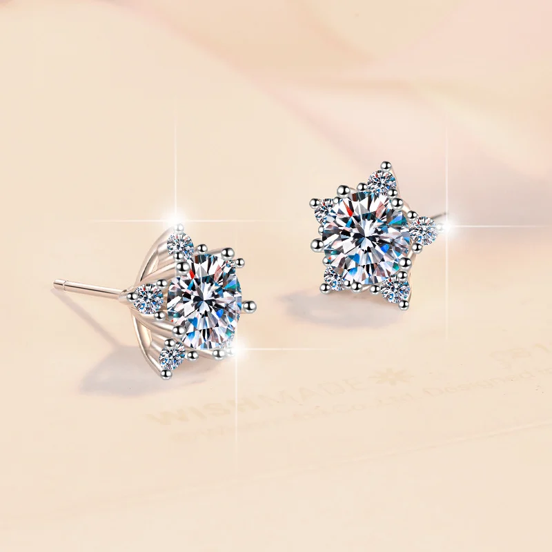 Luxury S925 Sterling Silver Earrings – Moissanite Asteroid-shaped Stones, In A Casual Style
