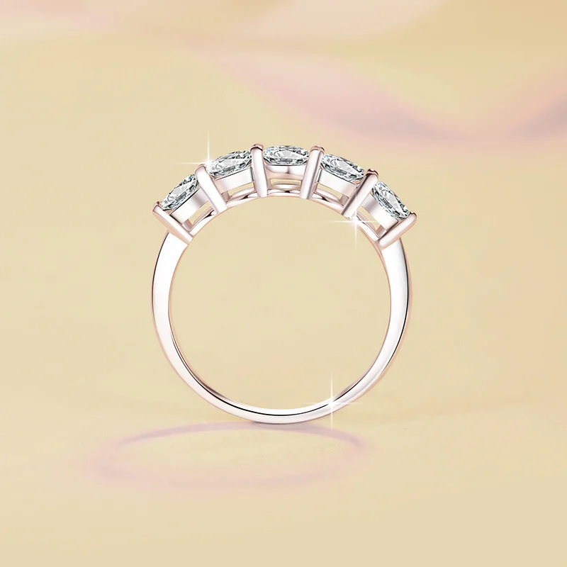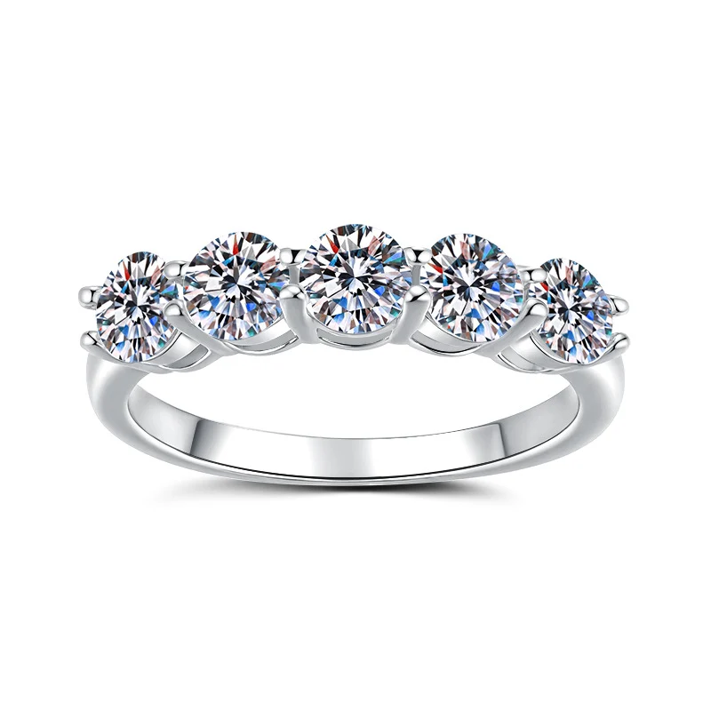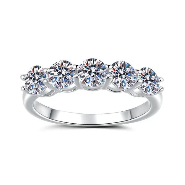 Elegant Five-Stone 5mm Ring in White Gold-Plated Sterling Silver – A Simple, Timeless Design
