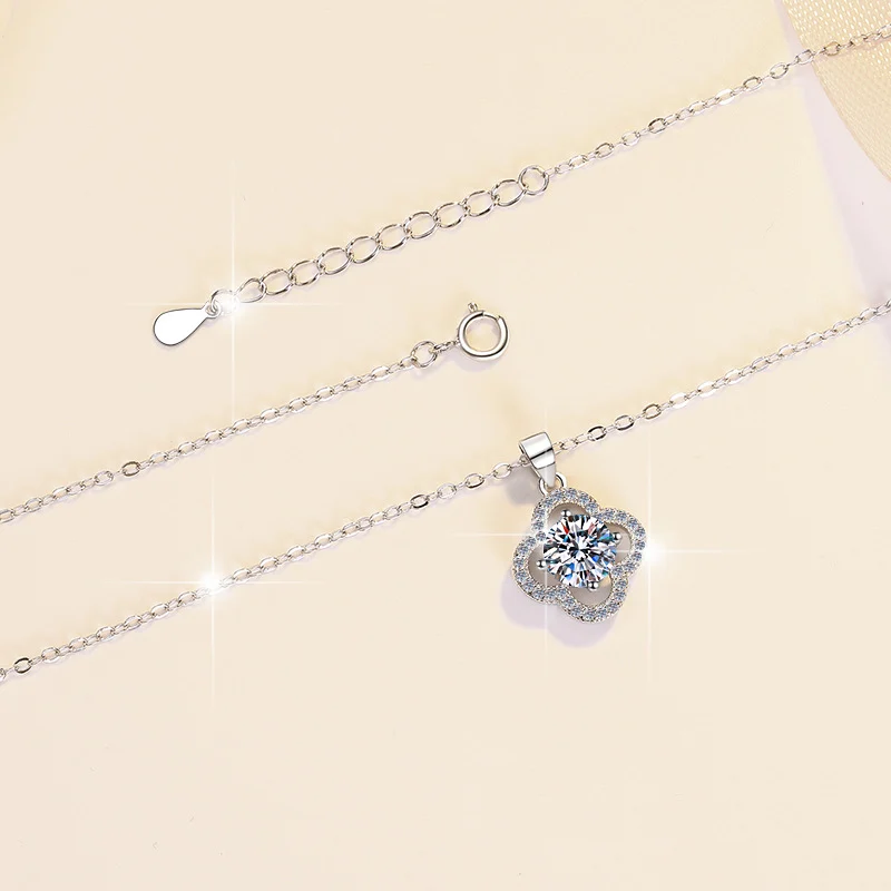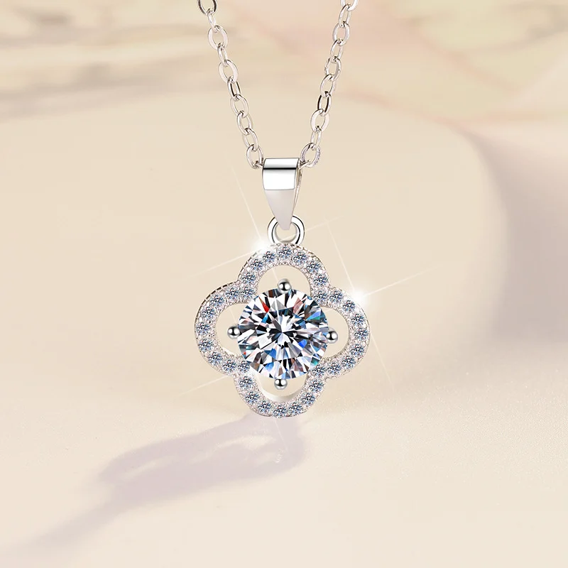 Elegant Four-Leaf Clover Clavicle Necklace – 1-Carat Pendant in 925 Sterling Silver