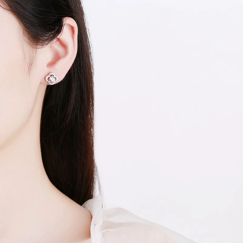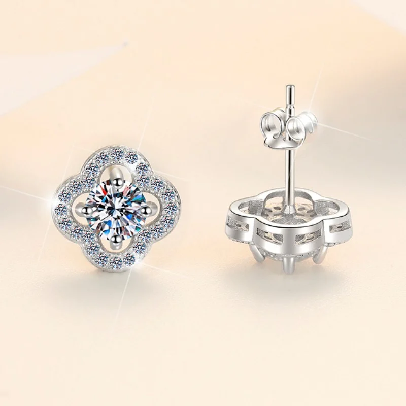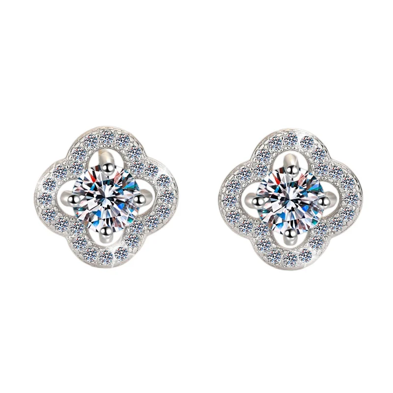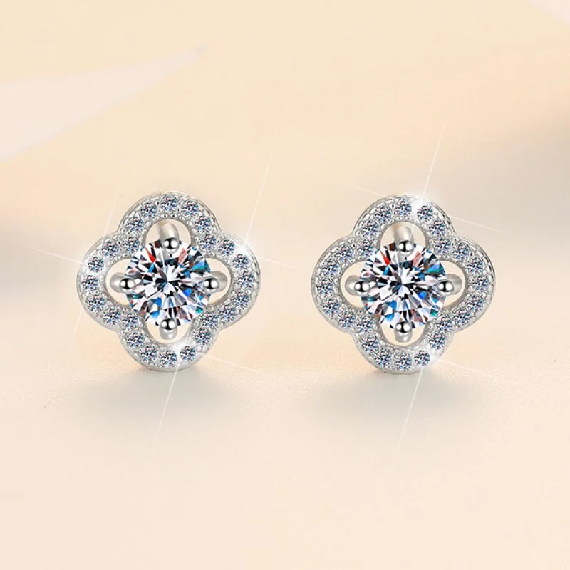 Elegant Four-Leaf Clover Earrings Adorned with Sparkling Stones – A Minimalist, Timeless Design