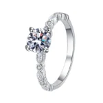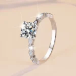 Elegant 1-Carat Bowknot Ring in White Gold-Plated S925 Sterling Silver – Classic Four-Prong Setting with a Refined, High-End Design for Women