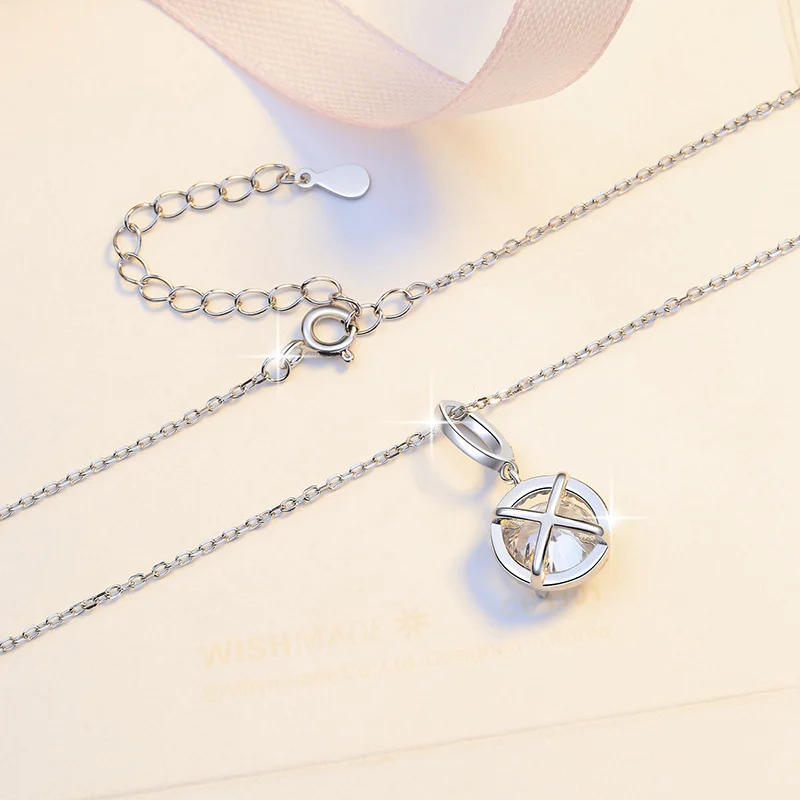 Elegant Geometric Round Pendant Necklace in White Gold-Plated S925 Sterling Silver for Women