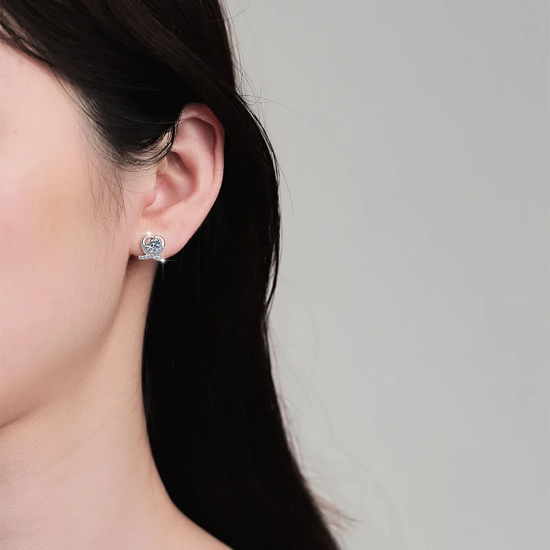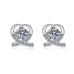 Elegant 1-Carat Bowknot Ring in White Gold-Plated S925 Sterling Silver – Classic Four-Prong Setting with a Refined, High-End Design for Women