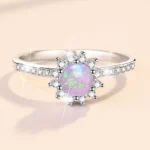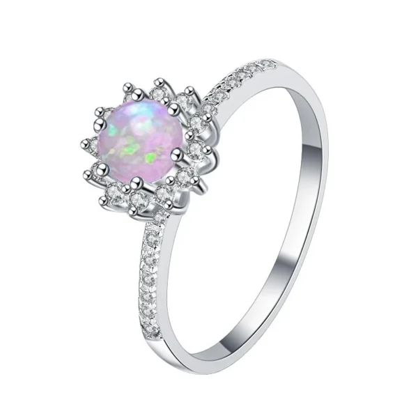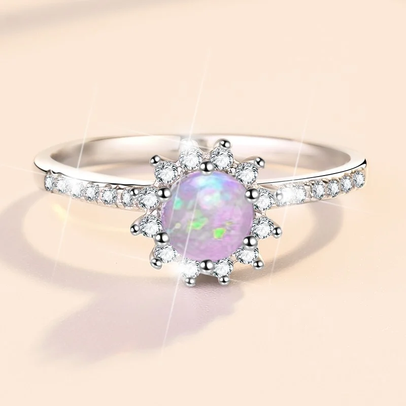 Elegant Opal Stone Ring in White Gold-Plated S925 Sterling Silver – A Luminous, Refined Design for Women