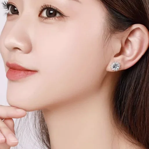 Elegant 0.3-Carat Flower-Shaped Earrings in White Gold-Plated