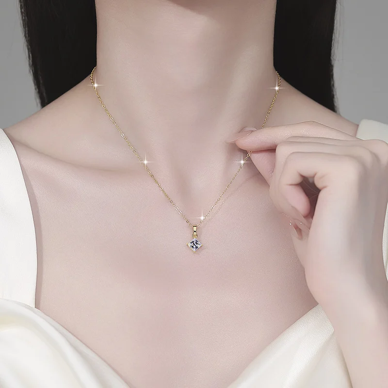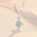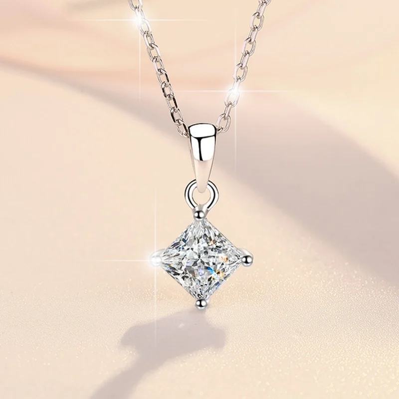 Elegant Princess-Cut Pendant Necklace in White Gold-Plated, Minimalist