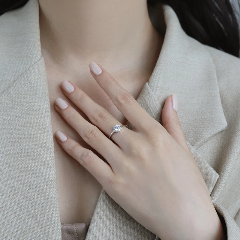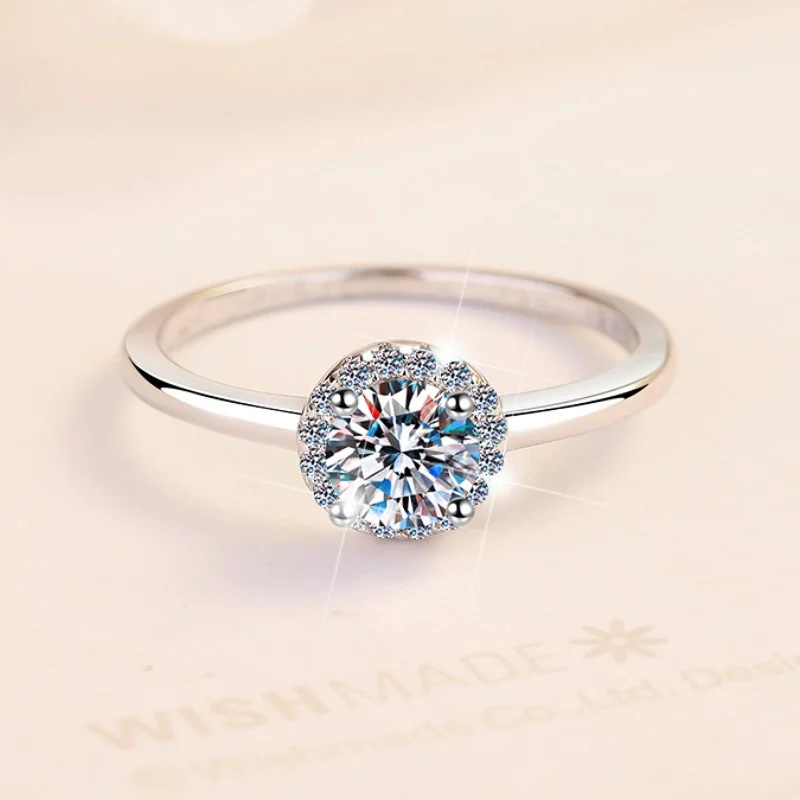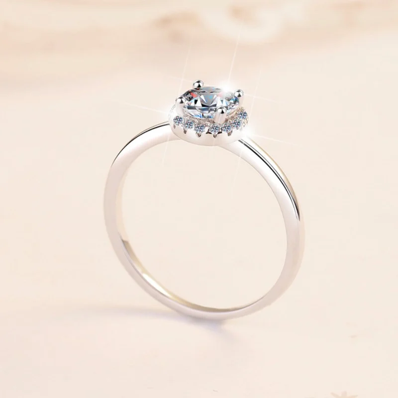 Elegant Round-Cut Moissanite Ring in White Gold-Plated S925 Sterling Silver for Women – A Timeless, Refined Design