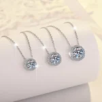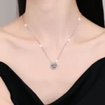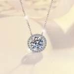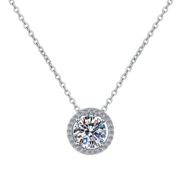 Elegant S925 Sterling Silver Necklace – Round Moissanite Pendant with a Brilliant Sparkle