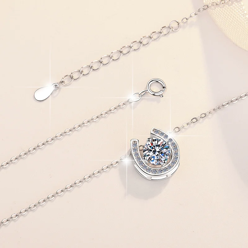 Elegant S925 Sterling Silver Necklace – Unique Light Luxury Design with U-Shaped Horseshoe Pendant