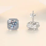 Elegant Square Earrings in White Gold-Plated S925 Sterling Silver for Women – A Simple, Timeless Design