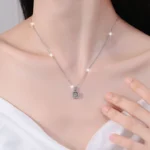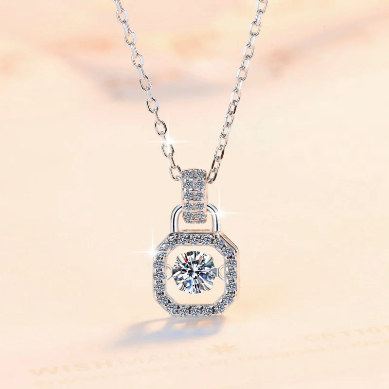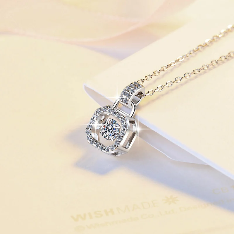 Elegant Square Pendant Necklace in White Gold-Plated S925 Sterling Silver for Women