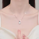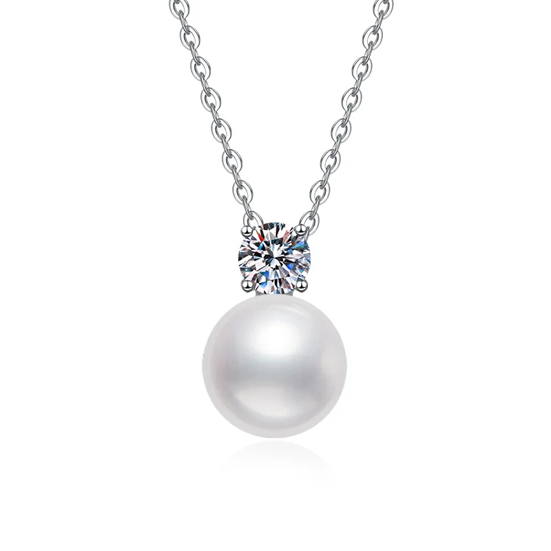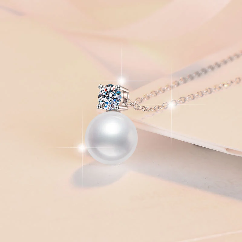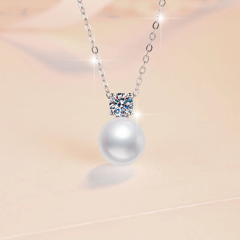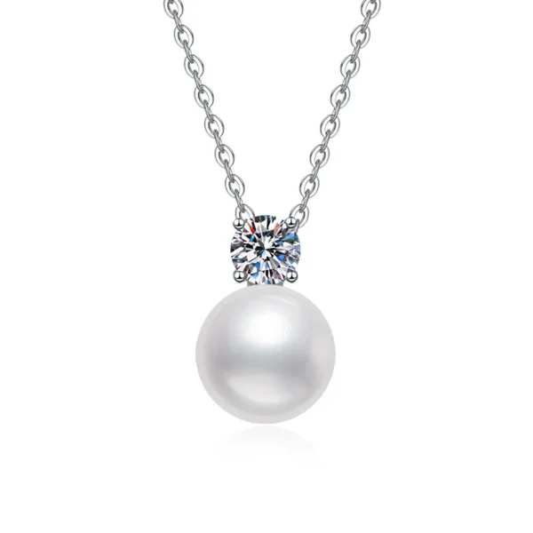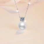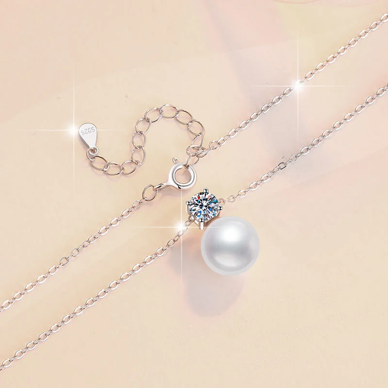 Elegant Summer Clavicle Necklace – Freshwater Pearl & Moissanite in S925 Sterling Silver