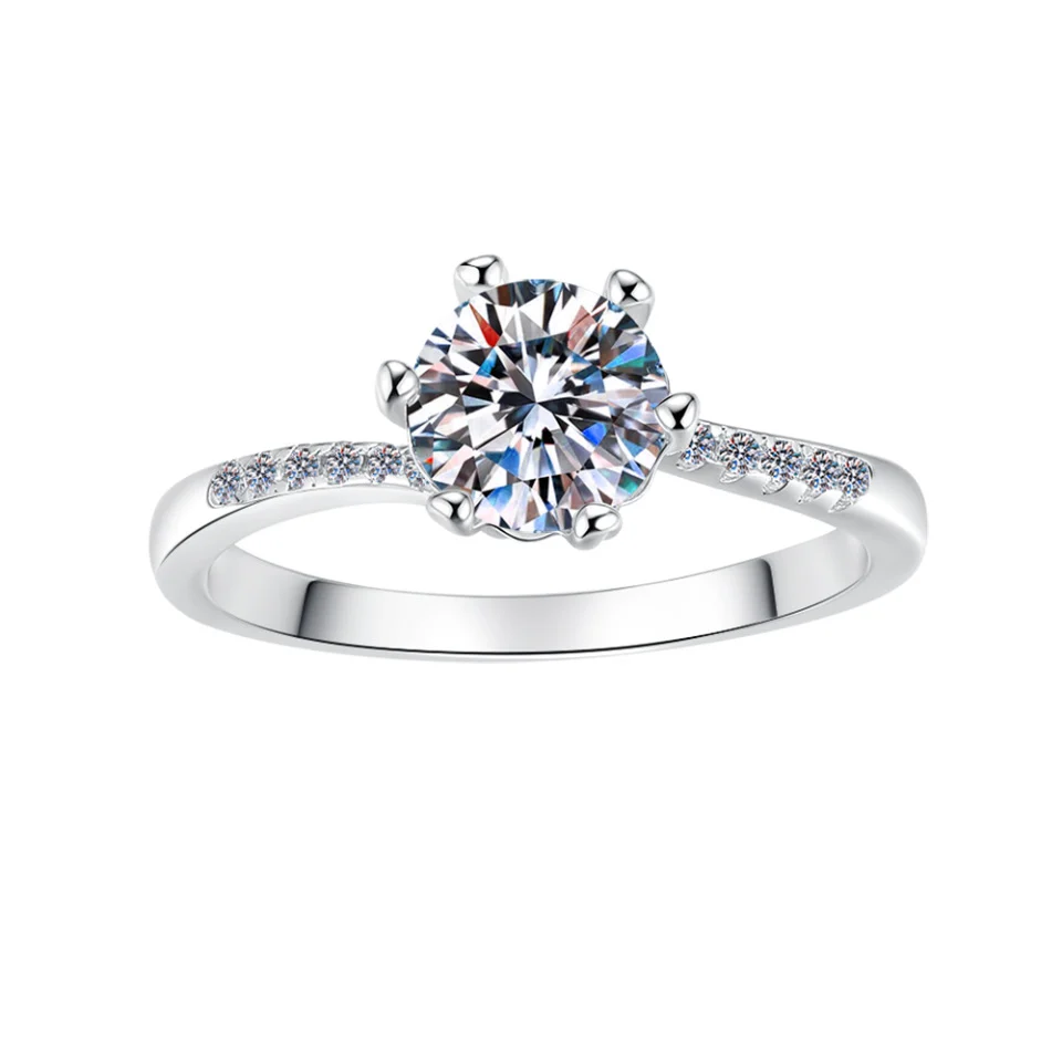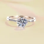 Elegant 1-Carat Bowknot Ring in White Gold-Plated S925 Sterling Silver – Classic Four-Prong Setting with a Refined, High-End Design for Women