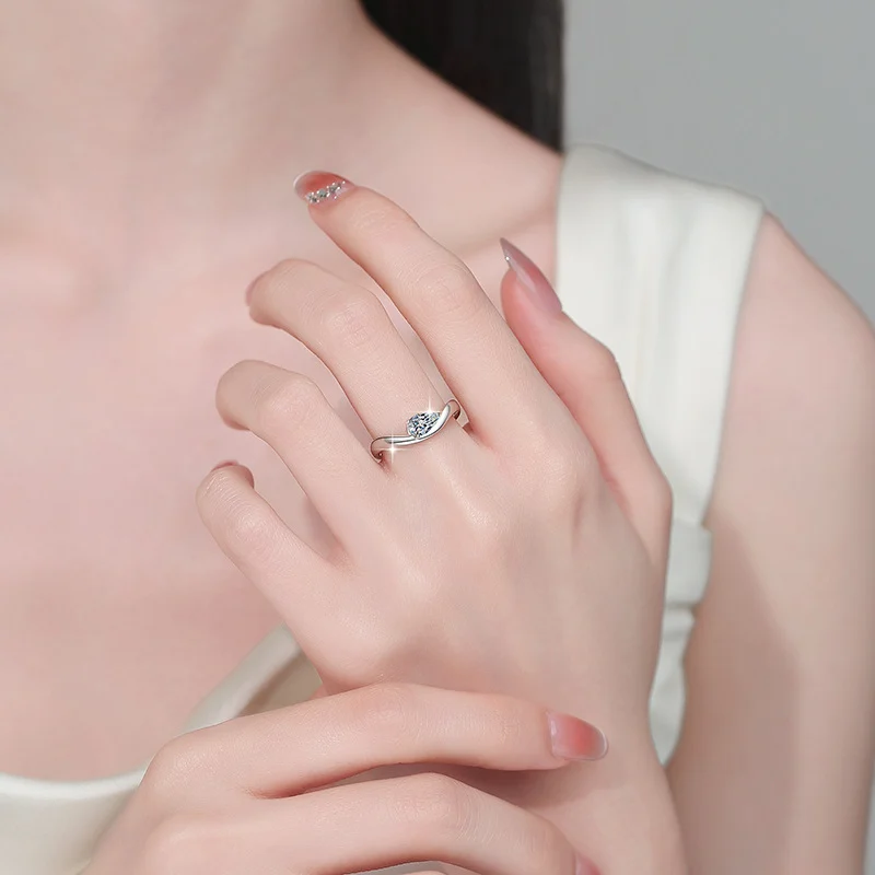 Elegant Water Drop-Shaped Ring in White Gold-Plated 925 Sterling Silver – A Minimalis
