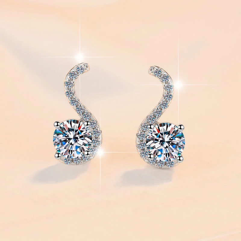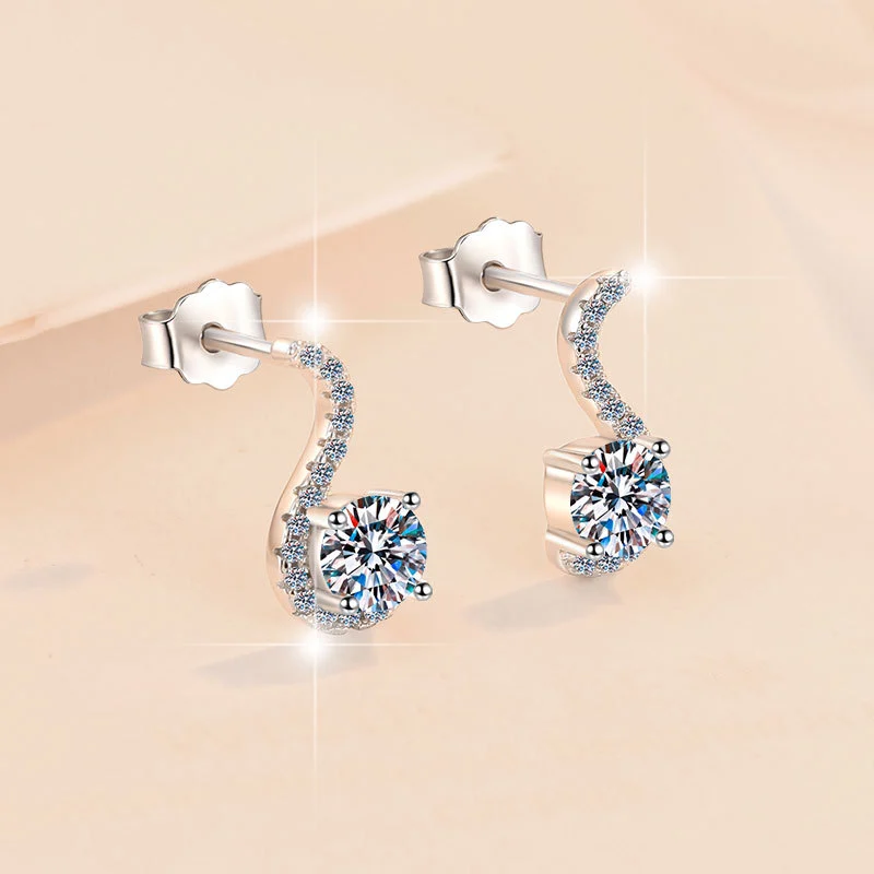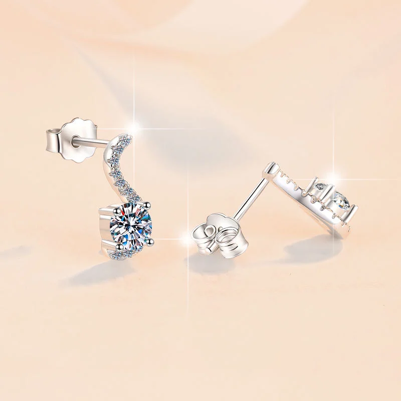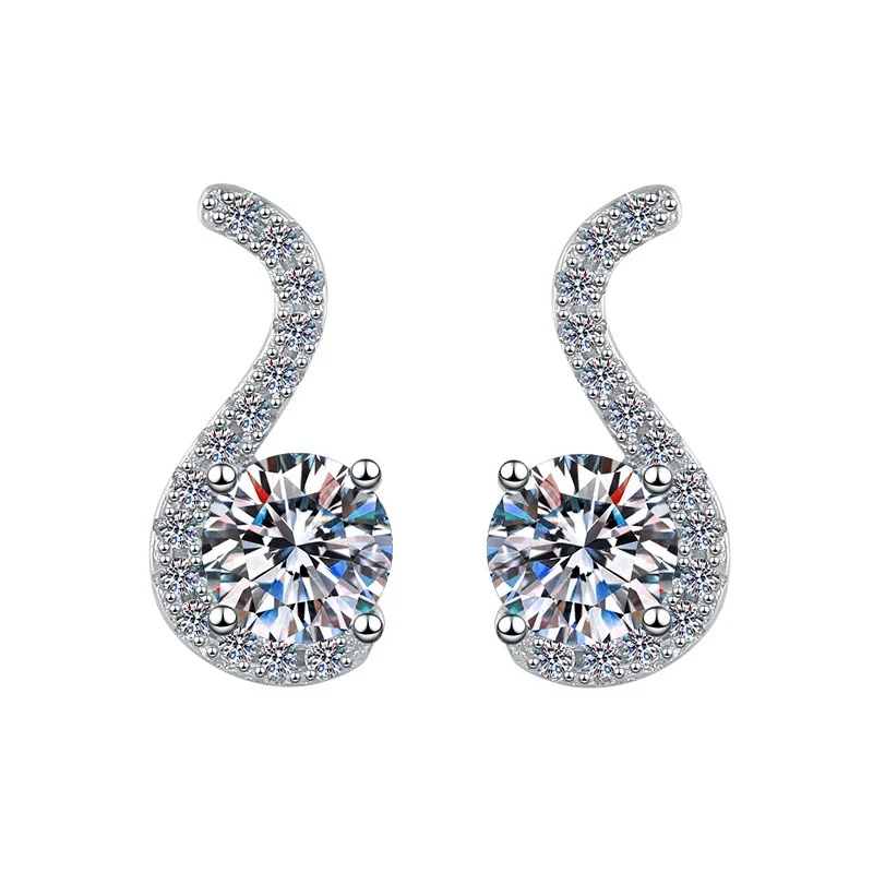 Luxury S925 Sterling Silver Earrings – Moissanite Asteroid-shaped Stones, In A Casual Style