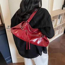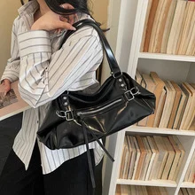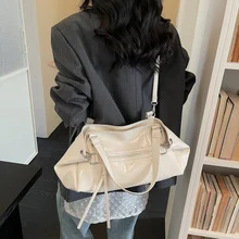Korean-Style Large-Capacity Solid Color Tote – Casual Fashion Commuter Underarm & Shoulder Crossbody Bag