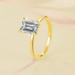 Luxury 2-Carat Emerald-Cut Moissanite Ring – 18K Gold-Plated 925 Sterling Silver, Timeless European & American Design
