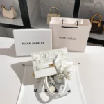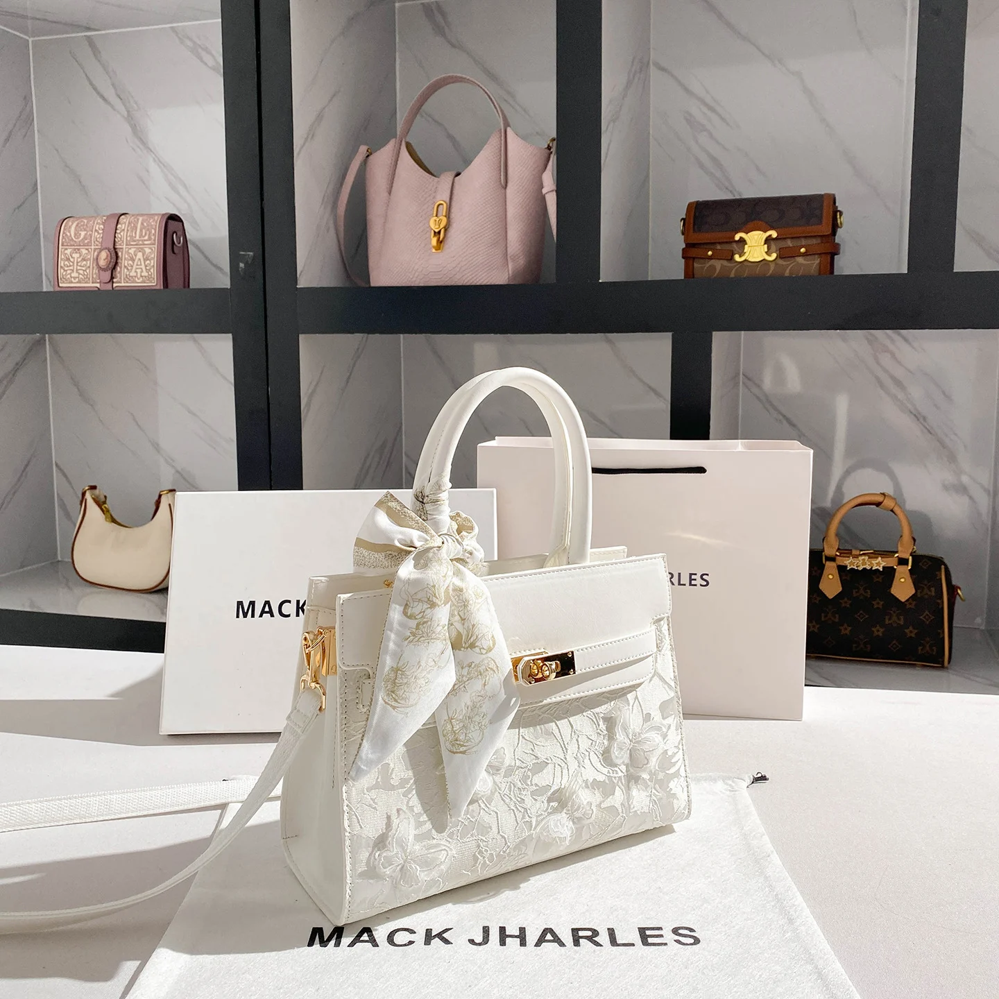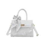 Crossbody Shoulder Handbag for Women – Small Square Woven Strap Scarf Accent Princess Diana Style Bag