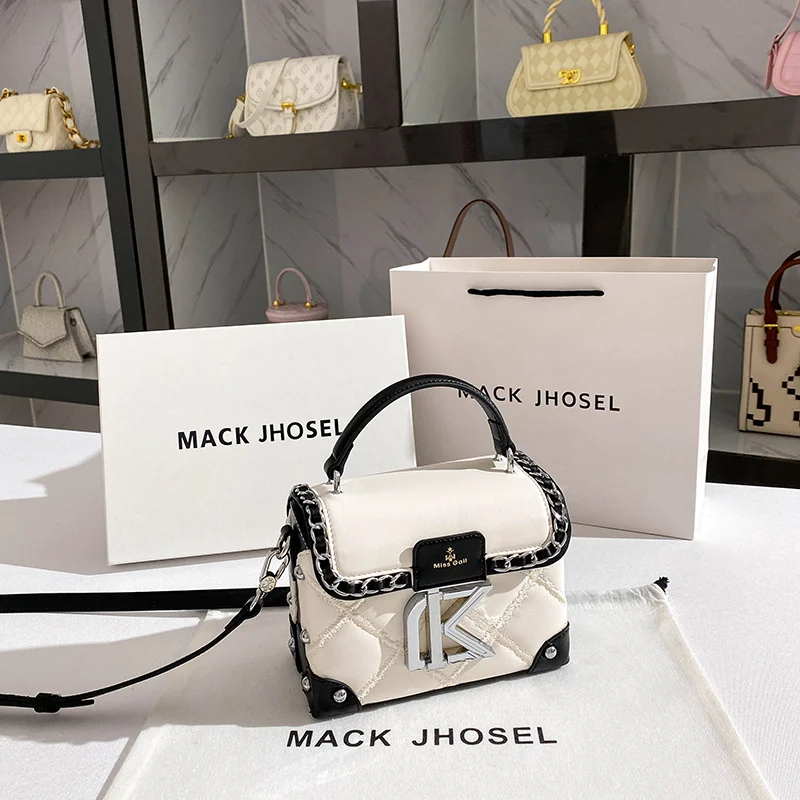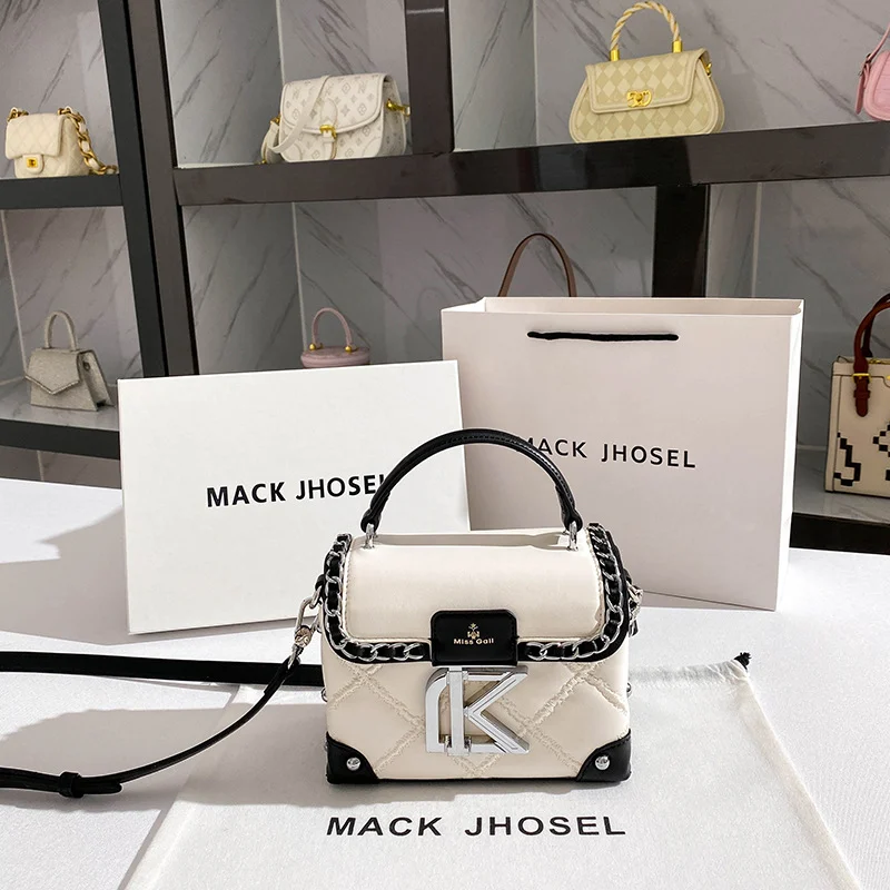 Luxury Niche Contrast-Color Box Bag – High-End Shoulder & Crossbody Cosmetic Bag