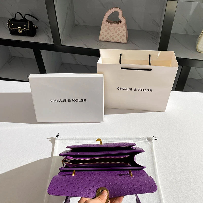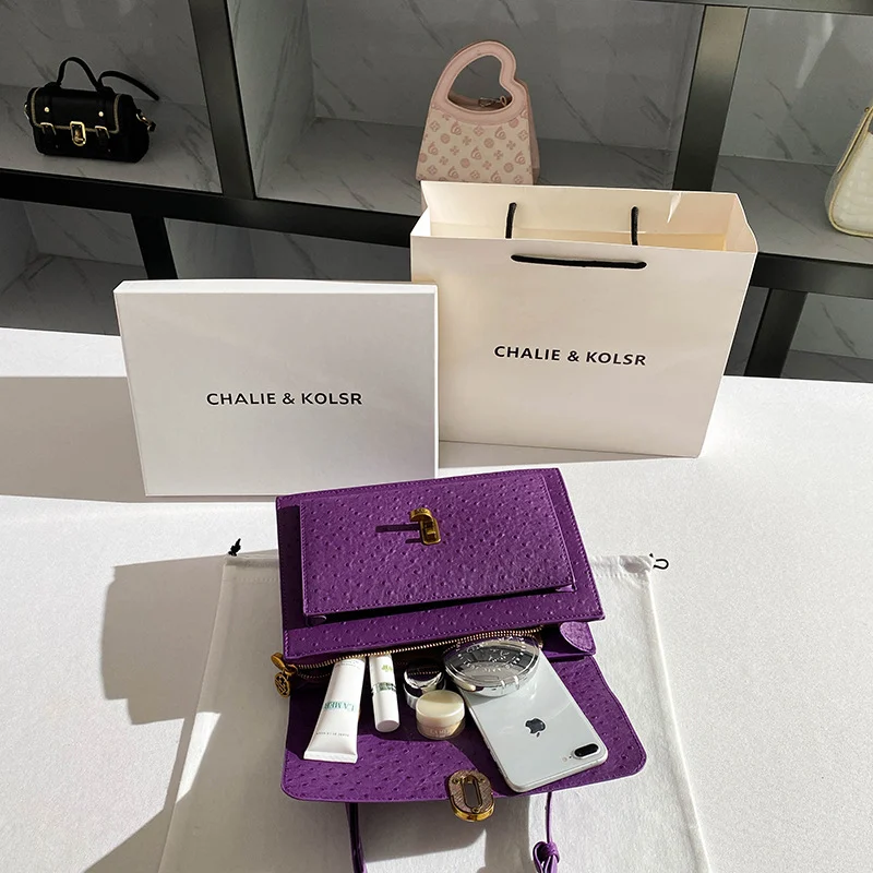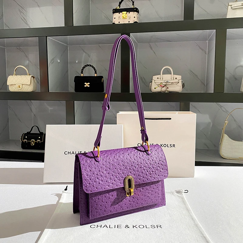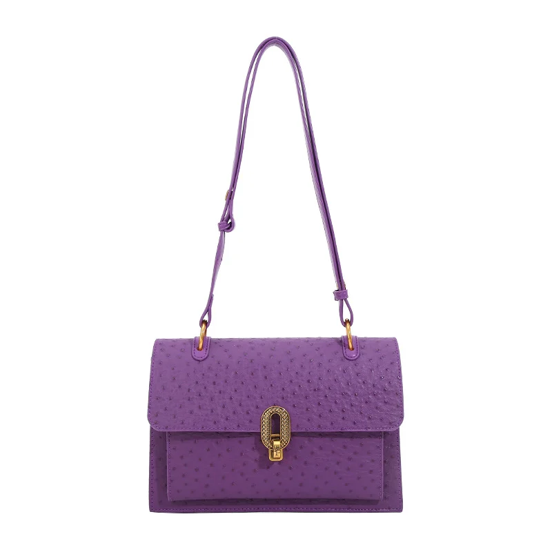 Luxury Purple Ostrich-Pattern Chain Underarm Bag – High-Sense Small Square Tote Wholesale