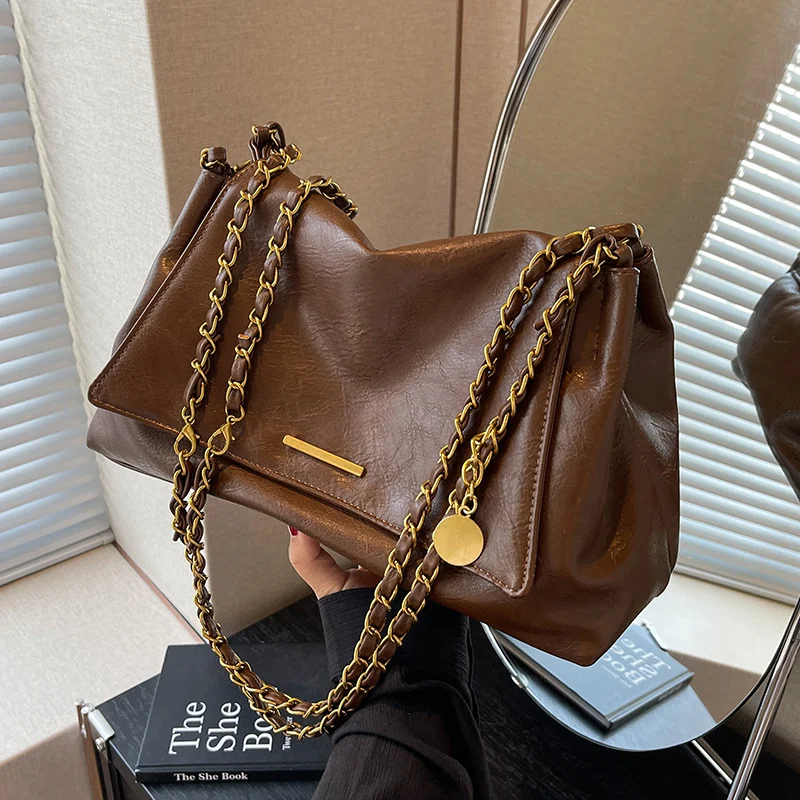 Luxury Retro Women’s Shoulder Bag – Large-Capacity Underarm Tote with Elegant Chain Crossbody Design