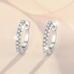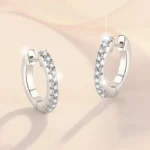 Luxury Round Geometric Earrings in White Gold-Finish S925 Sterling Silver – Simple and Modern Design
