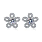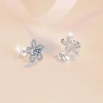 Luxury Five-Leaf Clover Flower Earrings in White Gold-Finish S925 Sterling Silver – Micro-Pavé Setting