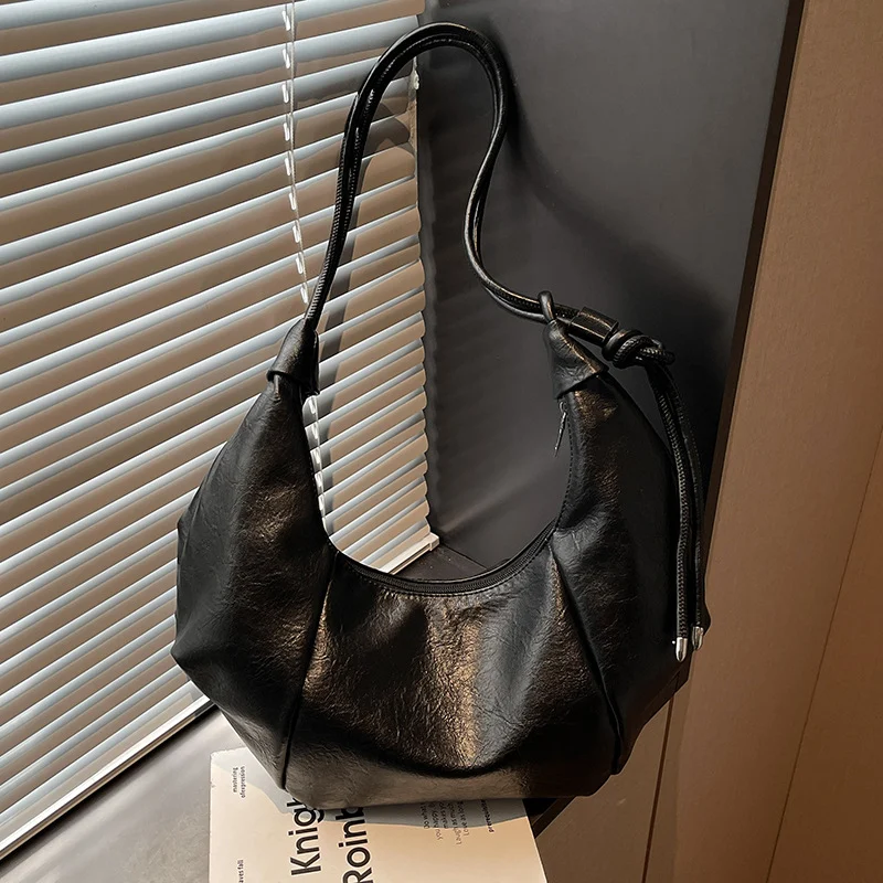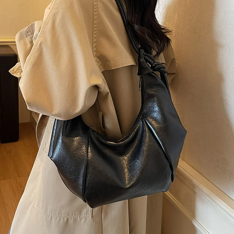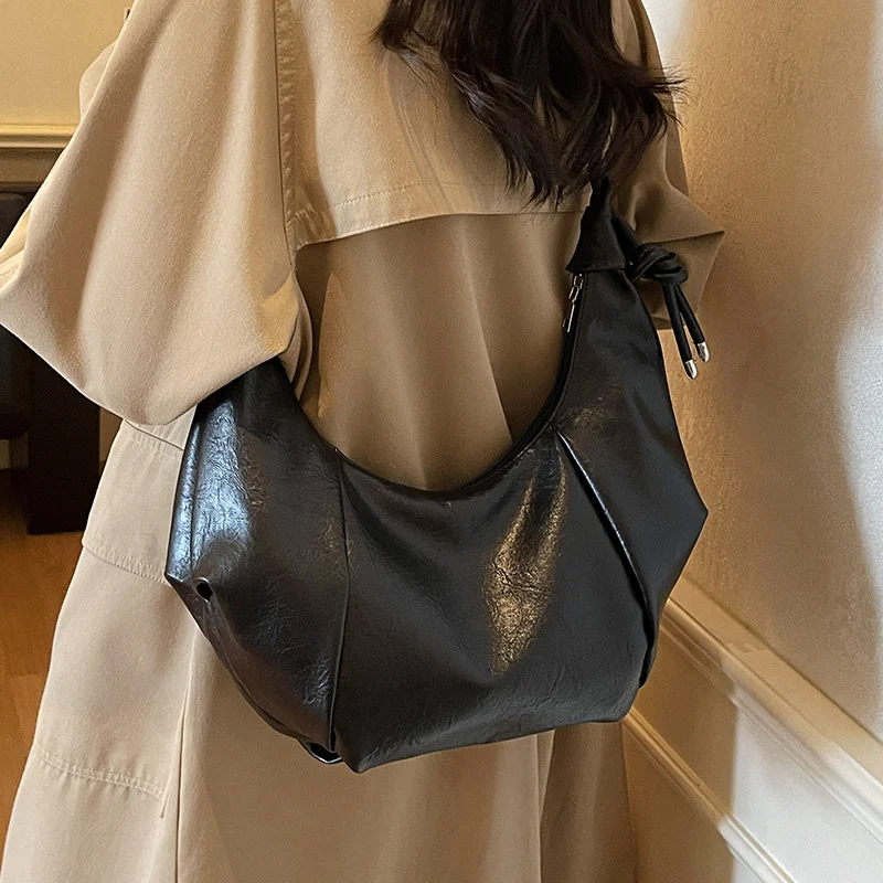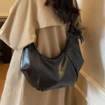 Luxury Soft Leather Dumpling Bag – Large-Capacity Commuter Croissant Crossbody for Women