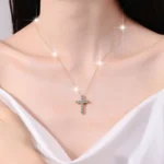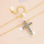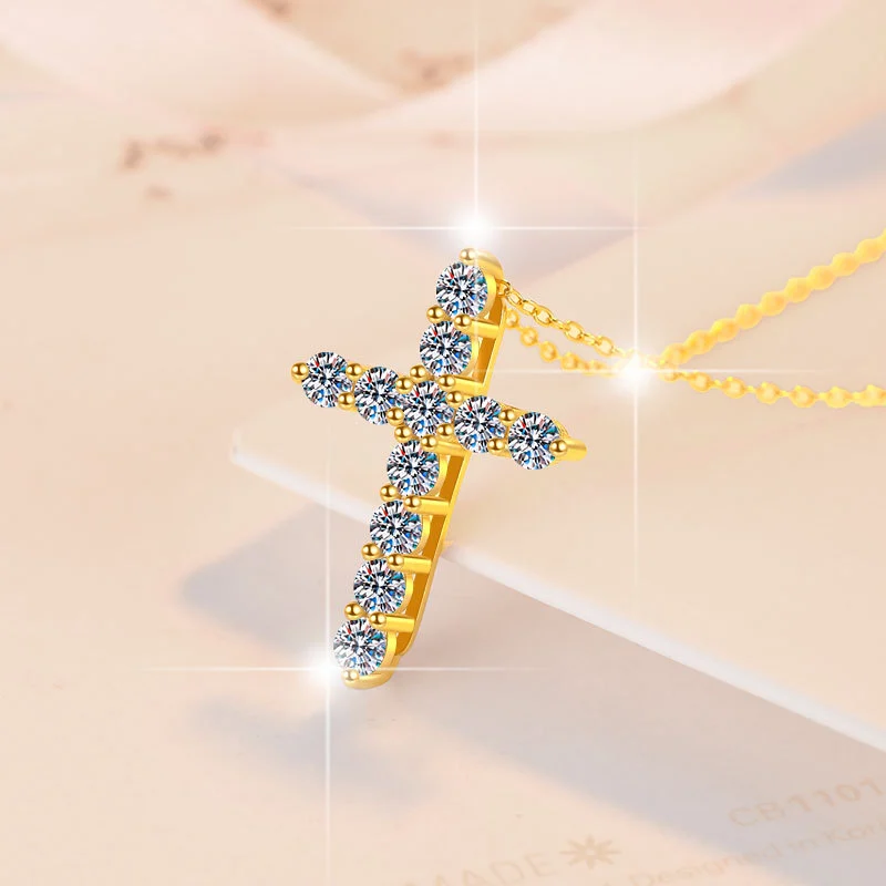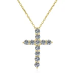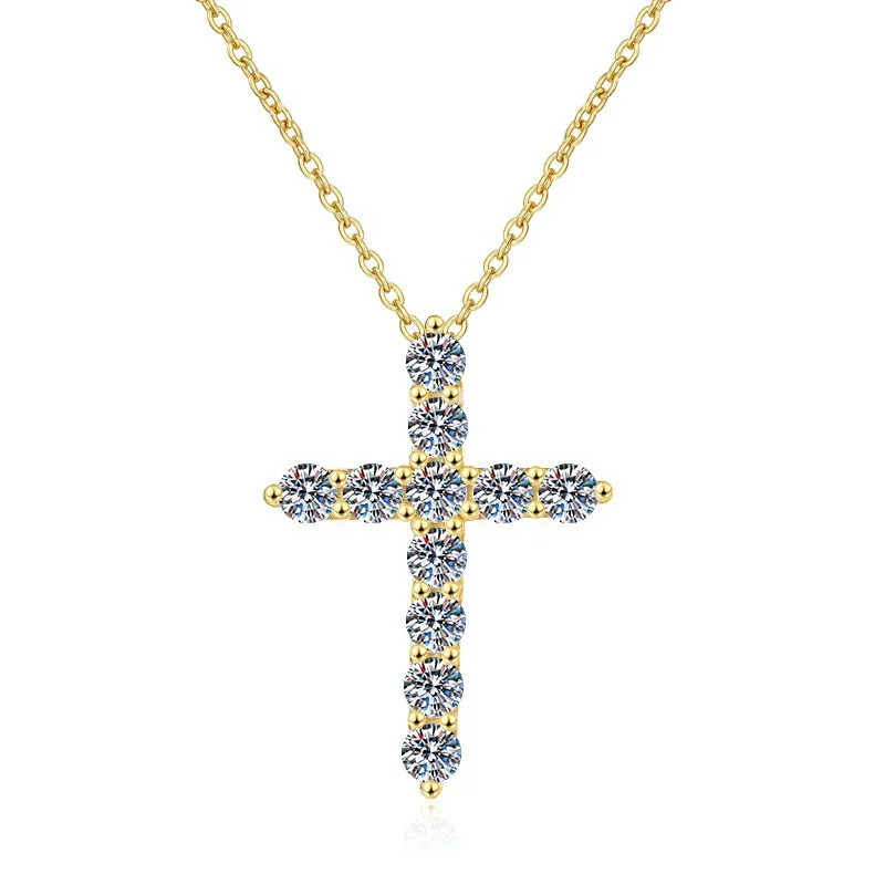 Luxury Women’s Moissanite Cross Pendant, 925 Sterling Silver 18k Gold Plated, Classic Style