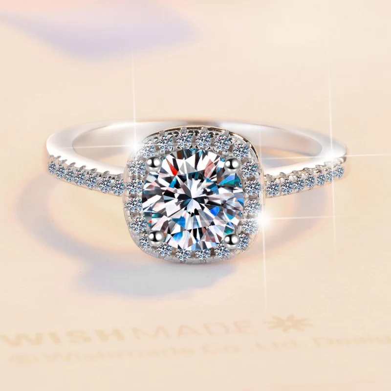 Premium 1-Carat D-Color Moissanite Ring in 925 Sterling Silver – Elegant Square Cut for Women
