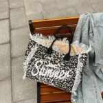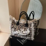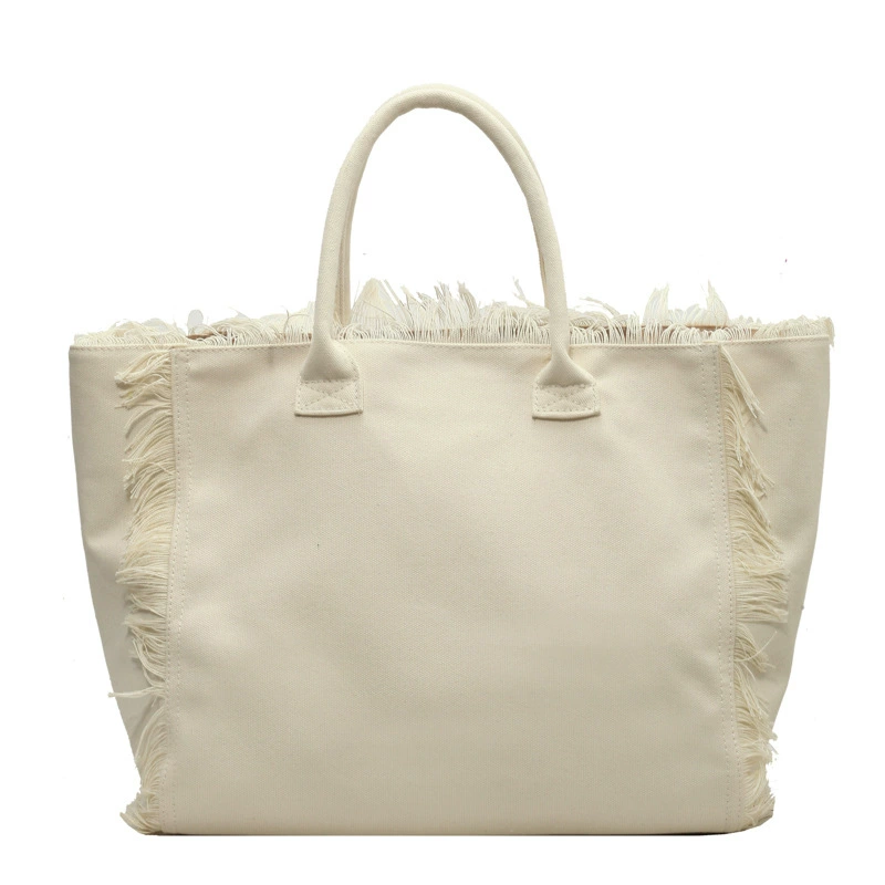 Premium Canvas Letter Print Tassel Tote Bag for Women – Large Capacity Solid Color Shoulder Work Bag